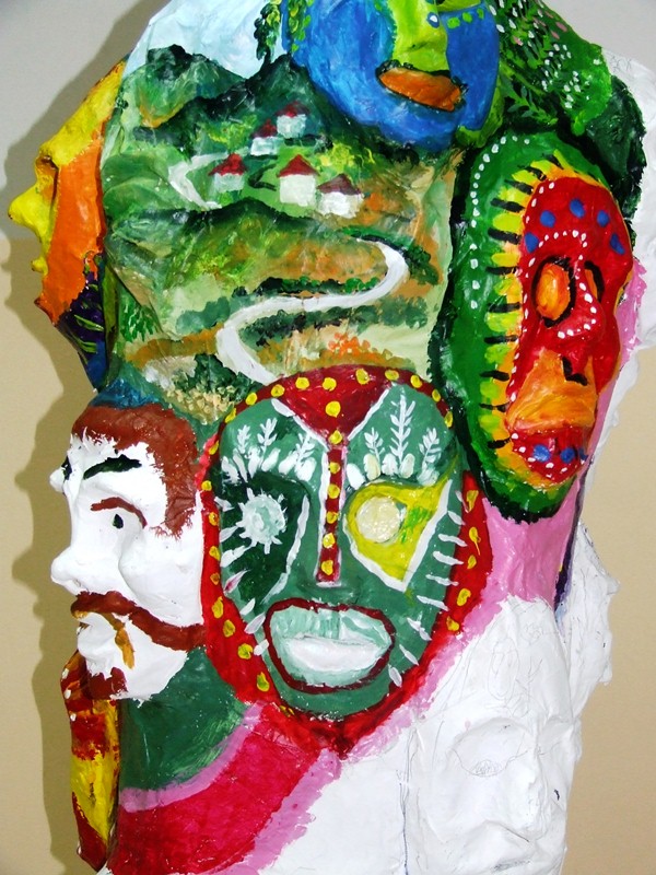 המסכות שאותם יצרו התלמידים בפרויקט המסכות שלהם, ביטאו הבעות פנים שונות ומשונות, שינויים ועיוותים באברי הפנים וביחס שביניהם ומכל אלה יצרו מגדל, עמוד, של דמויות שהפך להיות 'פסל הפנים' – בו המראה החיצוני של הפנים מספר בו בזמן הרבה גם על הַפְּנִים.