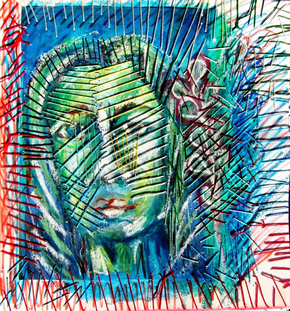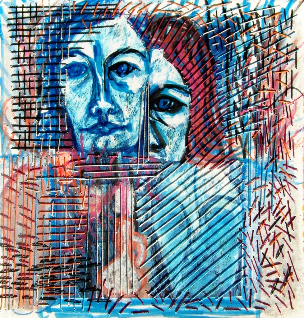 מאחר והעבודה מציעה דימויי דיוקן, ובעיקר דיוקן עצמי, ניתן להבין שהחיבורים, הקשרים, החוטים, הצבעים, השכבות – כל אלה מדברים על קשרים של אדם עם עצמו, ה'אגו' (האני) וה 'עצמי'[11], המודע והלא מודע, החלקים השונים של העצמי הגלויים והסמויים. קשרים תוך אישיים ובין אישיים. כל החוטים כמו גם בעבודות קודמות עליהם דיברתי כאן, מספרים על סוגים שונים של קשרים. ולא רק הקשרים של היוצר עם עצמו היוצר, עם עצמו הדובר, עם דמותו פנימה, אלא בו בזמן הקשרים שאני כיוצרת מבקשת ליצור עם הצופה, המתבונן, הקורא הפרשן.