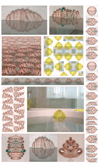 הצילום המקורי הופך להיות חומר ליצירות הדיגיטליות בהם היא "משחקת" עם הדימויים – בונה, מחברת, מפרקת, מעצבת, ומשכפלת, כשדימויי האצבעות והעלים הופכים להיות מוטיבים משתכפלים במקצב עיטורי החוזר על עצמו ובונה צורה חדשה ואחרת "טפטים, קליידוסקופים, נופים ופרחים".