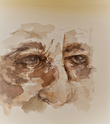 הציורים בטכניקת האקוורל, מנכיחה ומדגישה את השקיפות, מתוך שזה טבעו של צבע זה, אשר נותר שקוף ומאפשר לראות את שכבות הצבע, את מה שמתחת ומה שממעל. רבדים של כתמים ושל צבעים, מנכיחים באופן חזותי את העובדה ש 'מה שאתה רואה הוא לא כל מה שיש', שמתחת למראות הברורים קיימים המראות הבלתי נראים. עבודת האקוורל מגלה לנו באופן חזותי ומובהק שיש את מה שמתחת ומה שממעל "הצבעוניות השקופה מאפשרת להעמיק ולנסות להבין את הרגע בו נמצאת הדמות הניבטת מן הציור".