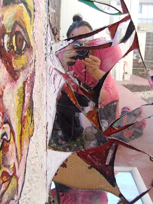 שברי המראה באובייקט, מתארים בדרך מטאפורית חזותית את מצבי העצמי השונים שיכולים להשתקף ולהשתנות חליפות, כמו גם על מצבים נפשיים, של פירוק ובנייה. קטעי הכתב הם ציטוטים מתוך שירתה של האמנית שגם הם משקפים פנים אחרות לדיוקן הנחקר והמתהווה. המראה השבורה מציגה מחד את השבריריות שיכולה לעלות מתוך מצבי שקיפות, אך בו בזמן מסמלת חרכים ופינות הצצה.