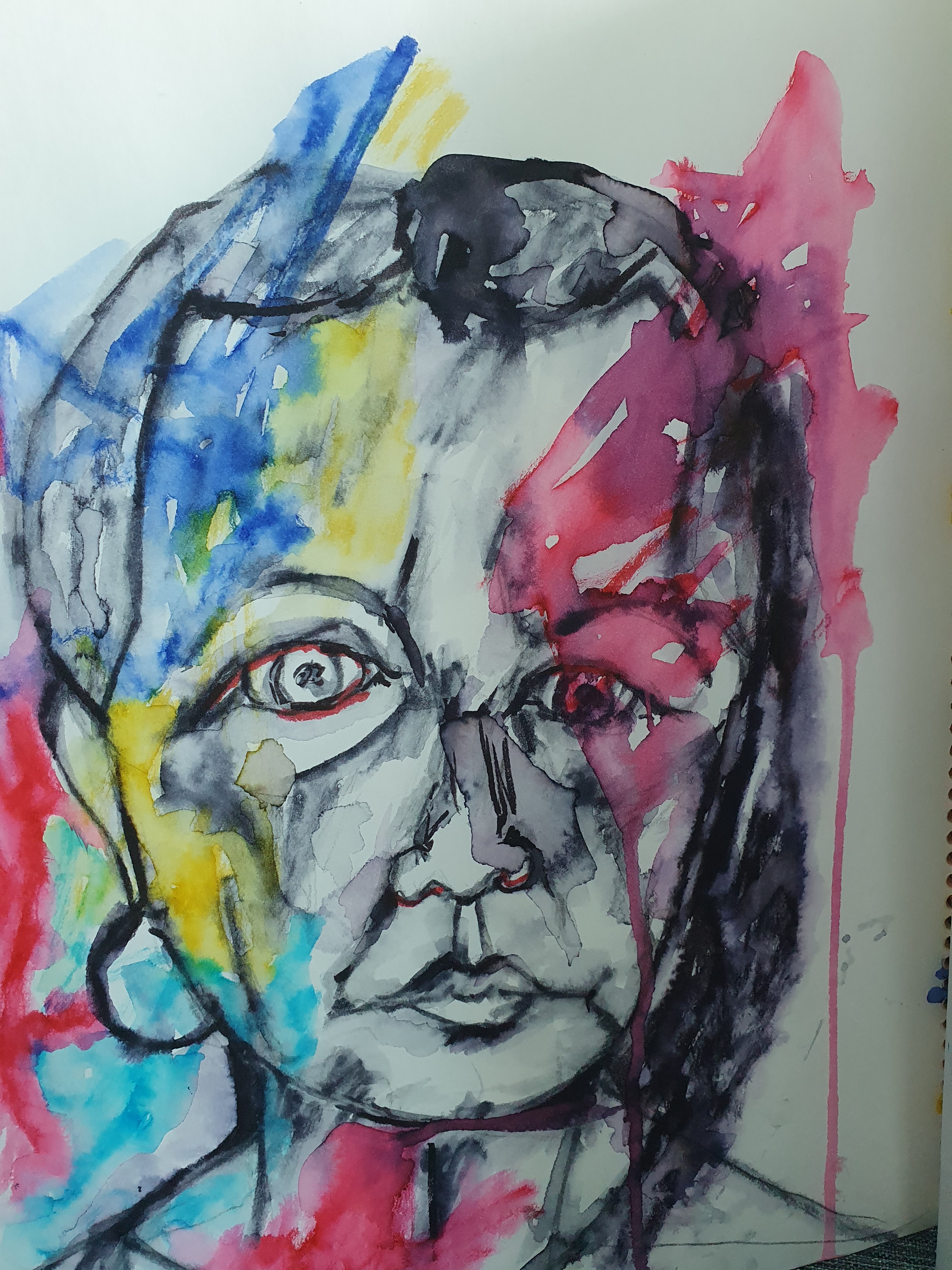 הפינה היא בימה זוהי תובנה עמוקה לדעתי, הדמות הקטנה, השקטה, היושבת בקרן זווית, הופכת דרך הקוביזם לדמות המרכזית של הסצנה. הצרצר הזה, כמו השיר שלך, לא מתחנן לתשומת לך, הוא נוכח. הצבעוניות הכהה נותנת תחושת לילה תמידי, אבל לטעמי היא אינה קודרת. אני רואה בה חמימות סמויה, מעין זוהר של רוח, של צליל שמדליק קירות אטומים .