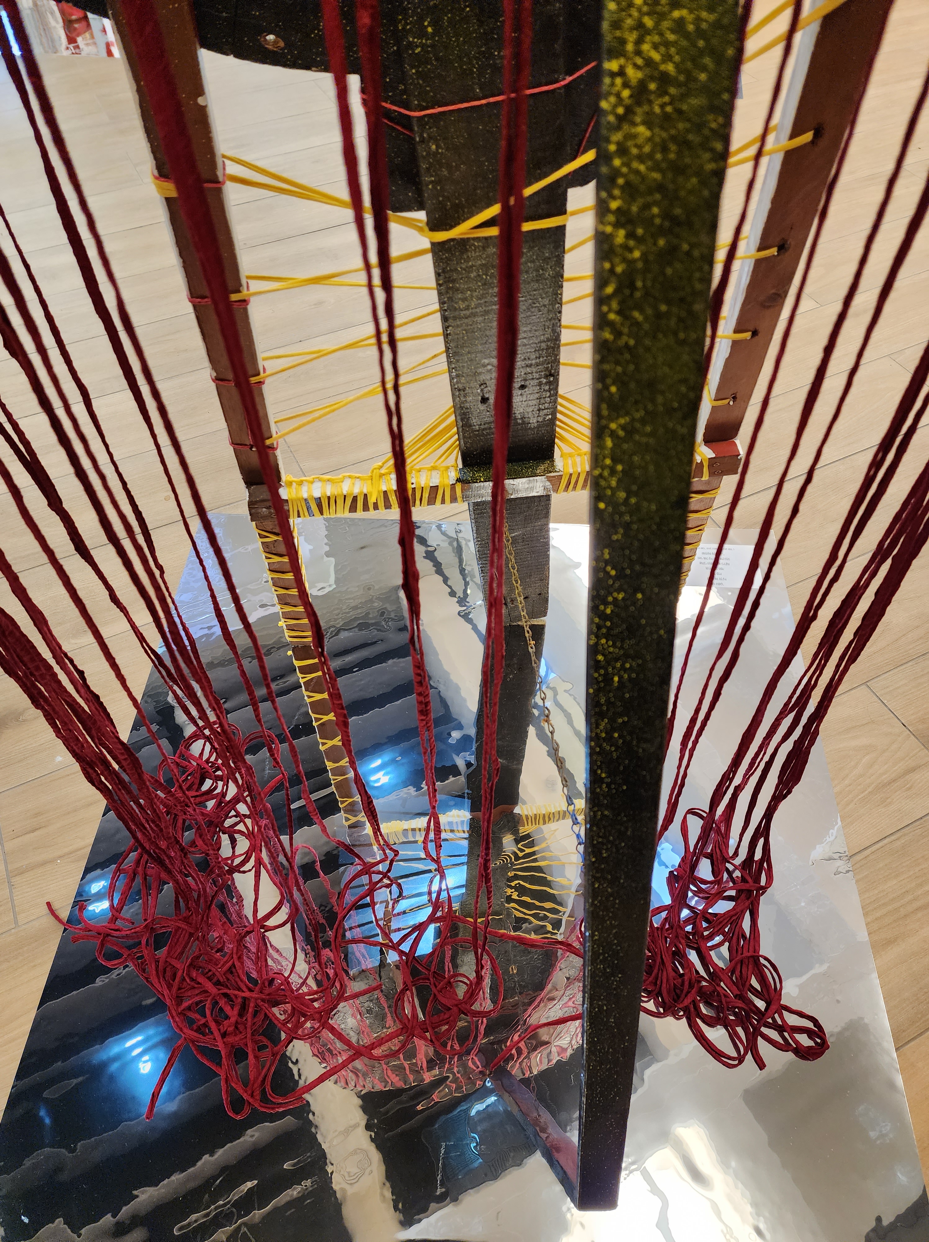 בנוסף ברמת החומר, החלקים המנוסרים שנותרו כסוג של חתך, הוסיפו עוד רשת קווים, החיבורים שנוצרו באמצעות החבל יצרו גם הם עוד קווים, עוד צורות, ועוד מרקמים. החוטים שהשתלשלו הפכו להיות חלק מהעניין. עתה יכולתי לומר שהיצירה שלמה והושלמה. ושוב אציין, מה שנוצר ונולד כאילו מתוך אילוץ הפך להיות אירוע משמעותי שגרם לי לחזור לעבודה זו, לטפל בה, לשפר אותה ולהפוך אותה למעניינת יותר ולמסקרנת יותר.